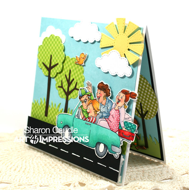 Today's card features SC0795 Road Trip from Art Impressions and it goes right along with the current AI Challenge of Summer Fun! Is there anything more fun than going on a road trip with your Besties? I wanted to make this card interactive, but I wanted it to look like the car was actually rolling down the road instead of you seeing the sliding mechanism. So I did a little googling and I love how it turned out! What can I say, interactive cards are always my favorite. Hopefully this video works and I apologize for the background noise...I forgot I had my little desk fan on. LOL