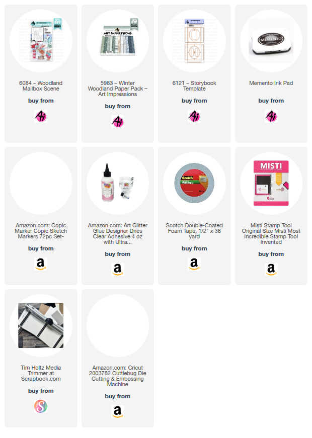 Wishing you all a very happy and prosperous new year for 2026!! I'm super excited to see what all Art Impressions has in store for us this year! I'm ready for some fun and crafting, how about you?! So today I've got a little shaker box I made using #6121 Storybook Template along with #6084 Woodland Mailbox Scene. The Storybook Template is so perfect for all of the recently released Woodland Scenes. They fit perfectly! All you have to do is glue a piece of acetate on the back of the front and it so easily turns into a shaker!! Add a hanger and you have another beautiful ornament for the tree, too!! I simply stamped the image onto some Copic friendly paper and colored it up with Copic markers. Cut it out and glued it to the inside back of the Storybook Template die and voila! So quick and easy! The paper is from #5963 Winter Woodland PP.